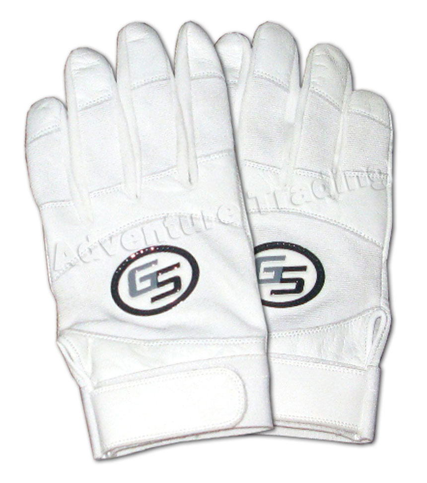 These are authentic leather baseball batting gloves. Made of cowhide leather with a four-way mesh fabric on the top of the hand and finger joints for aeration. Velcro closure strap.