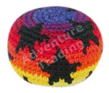 Crocheted Guatemalan Footbag - Top quality hand-crocheted footbag made in Guatemala. It's the world's most popular footbag. Choose from over 90 stock designs of this best-selling footbag, including the favorite colorful assorted geometric styles (G93). Approximately 2.25" inches in diameter. Choice of colors, designs or custom logo. Call 1-206-282-2215 to place an order.